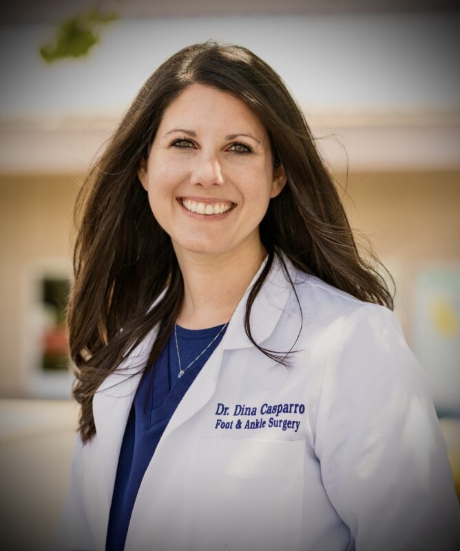 Dr. Dina Casparro is an experienced podiatric physician and surgeon with a comprehensive background in foot and ankle care, wound management, sports medicine, and reconstructive procedures. Originally from Southern California, she earned her Bachelor of Science in Biopsychology from the University of California, Santa Barbara, followed by her Doctor of Podiatric Medicine from the Temple University School of Podiatric Medicine in Philadelphia.